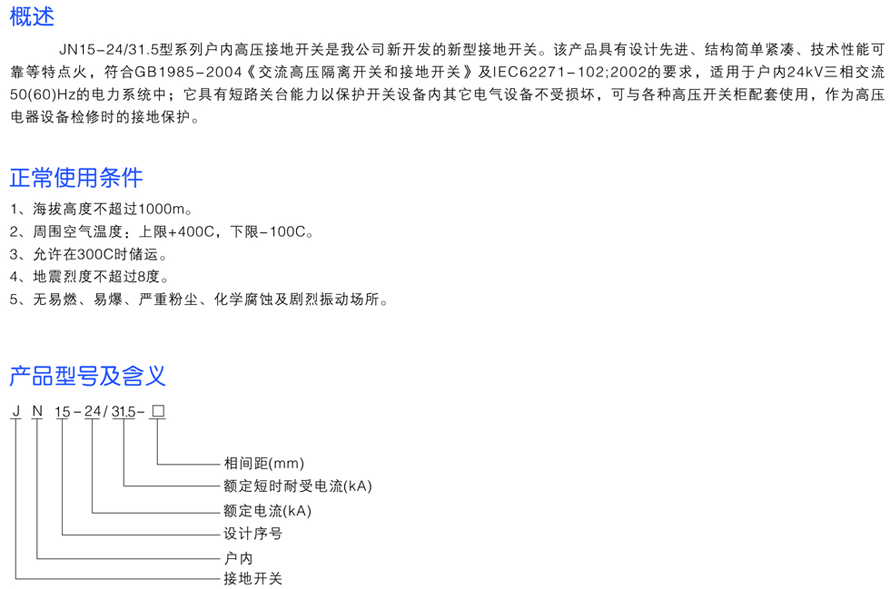 JN15-24/31.5戶內(nèi)高壓接地開關(guān)